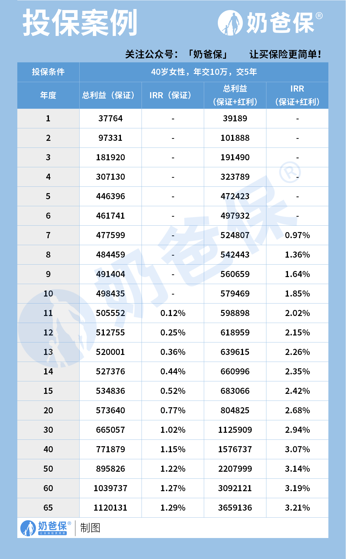 30岁女性,5年交,年交10万,单保证收益最高也超过1.5%,