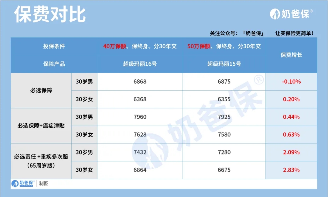 超级玛丽16号重疾险上线,对比15号有什么不同?涨了多少钱?