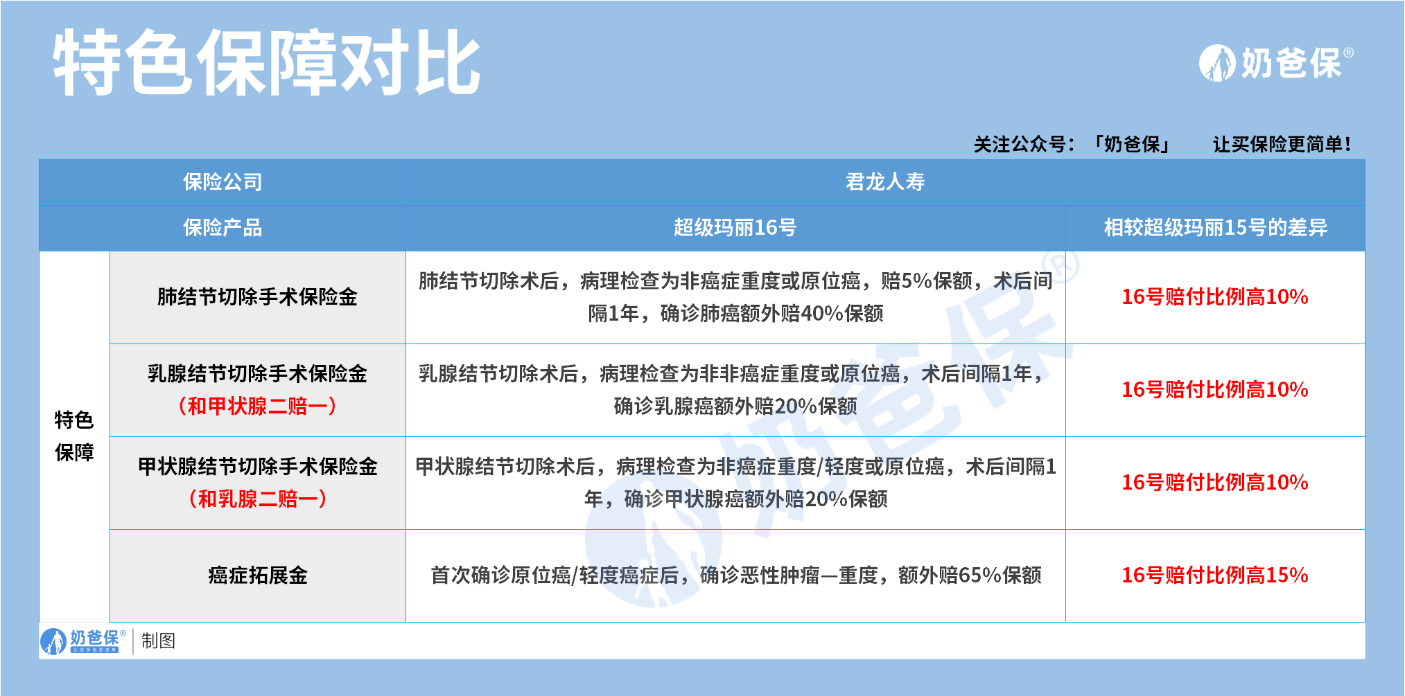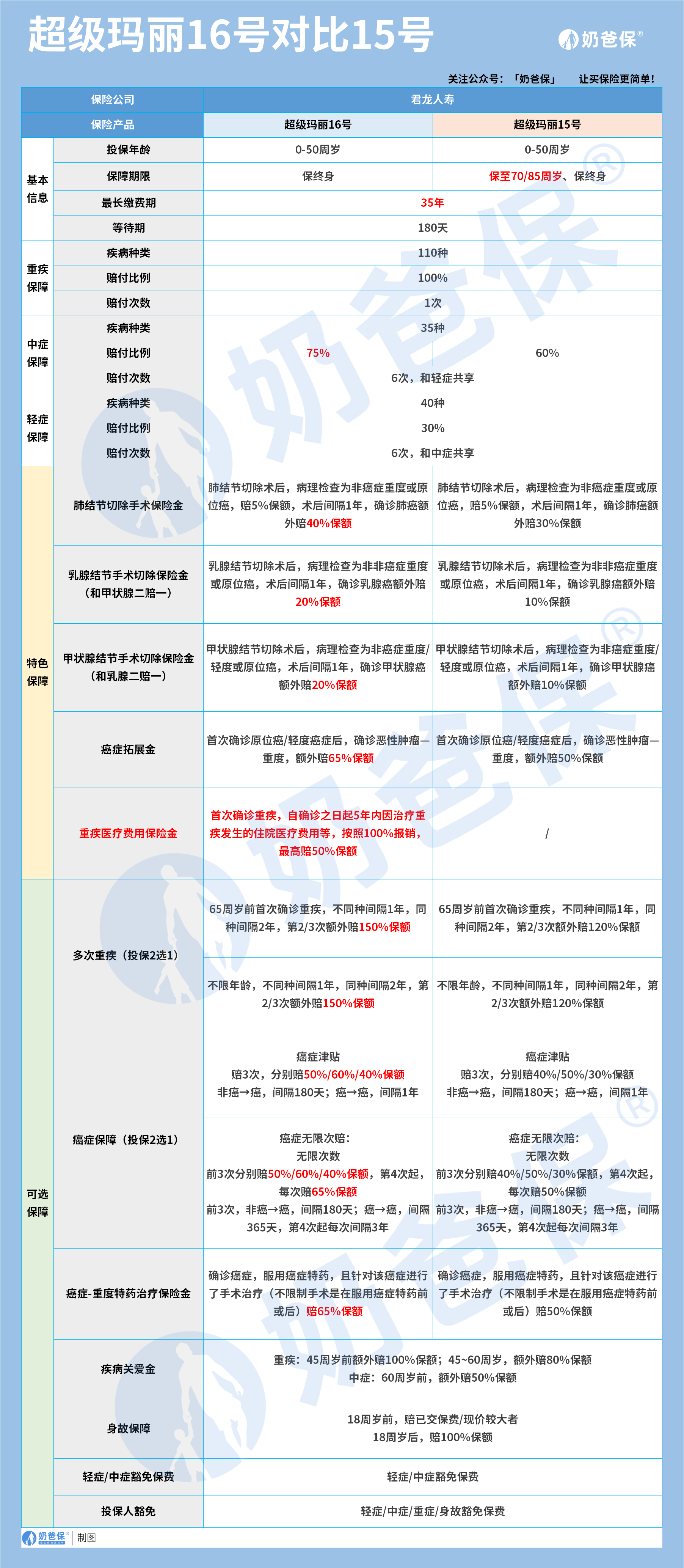 我们先来看超级玛丽16号和15号重疾险对比表: