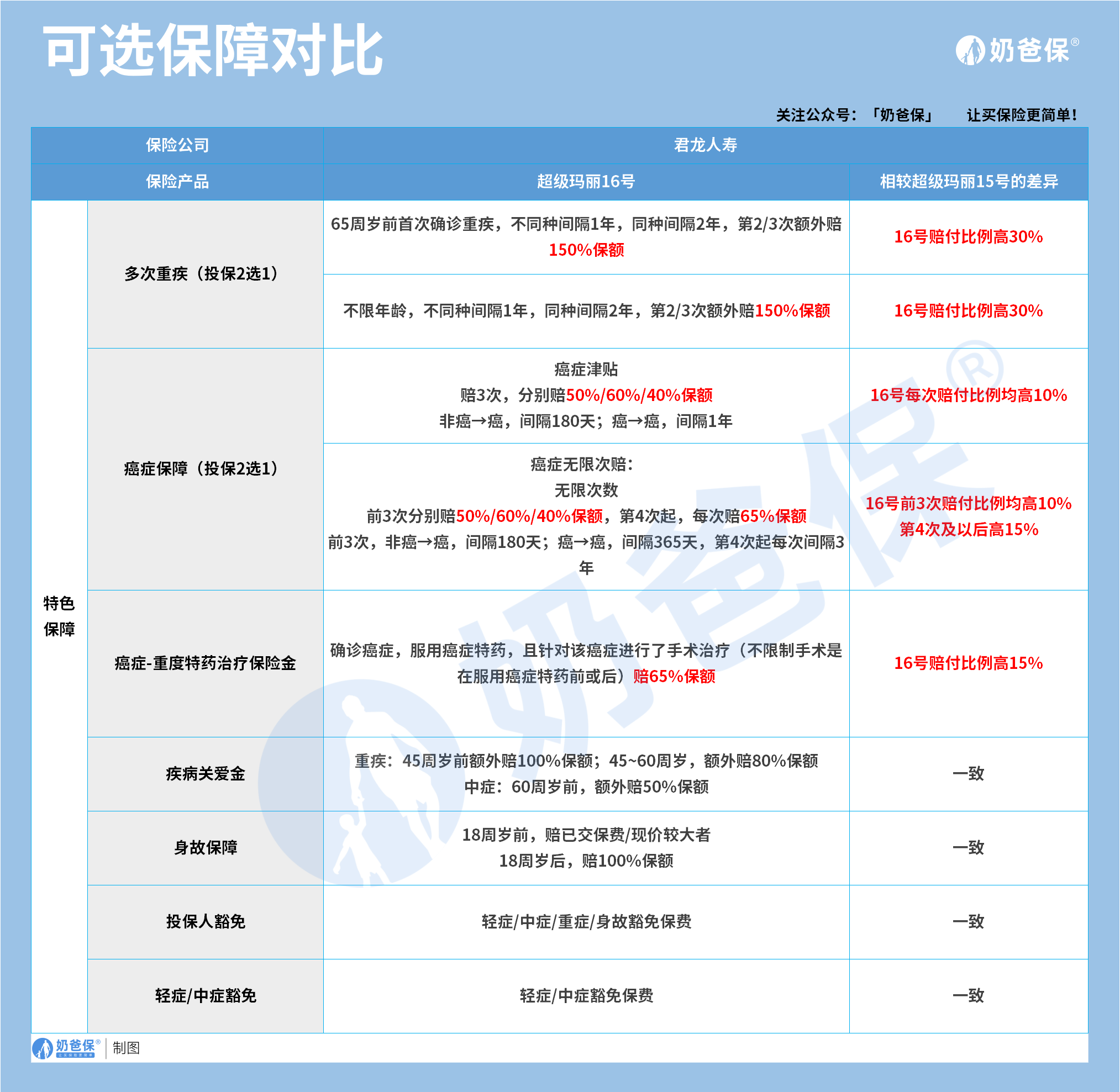 超级玛丽16号重疾险,在可选保障内容上变化不大,