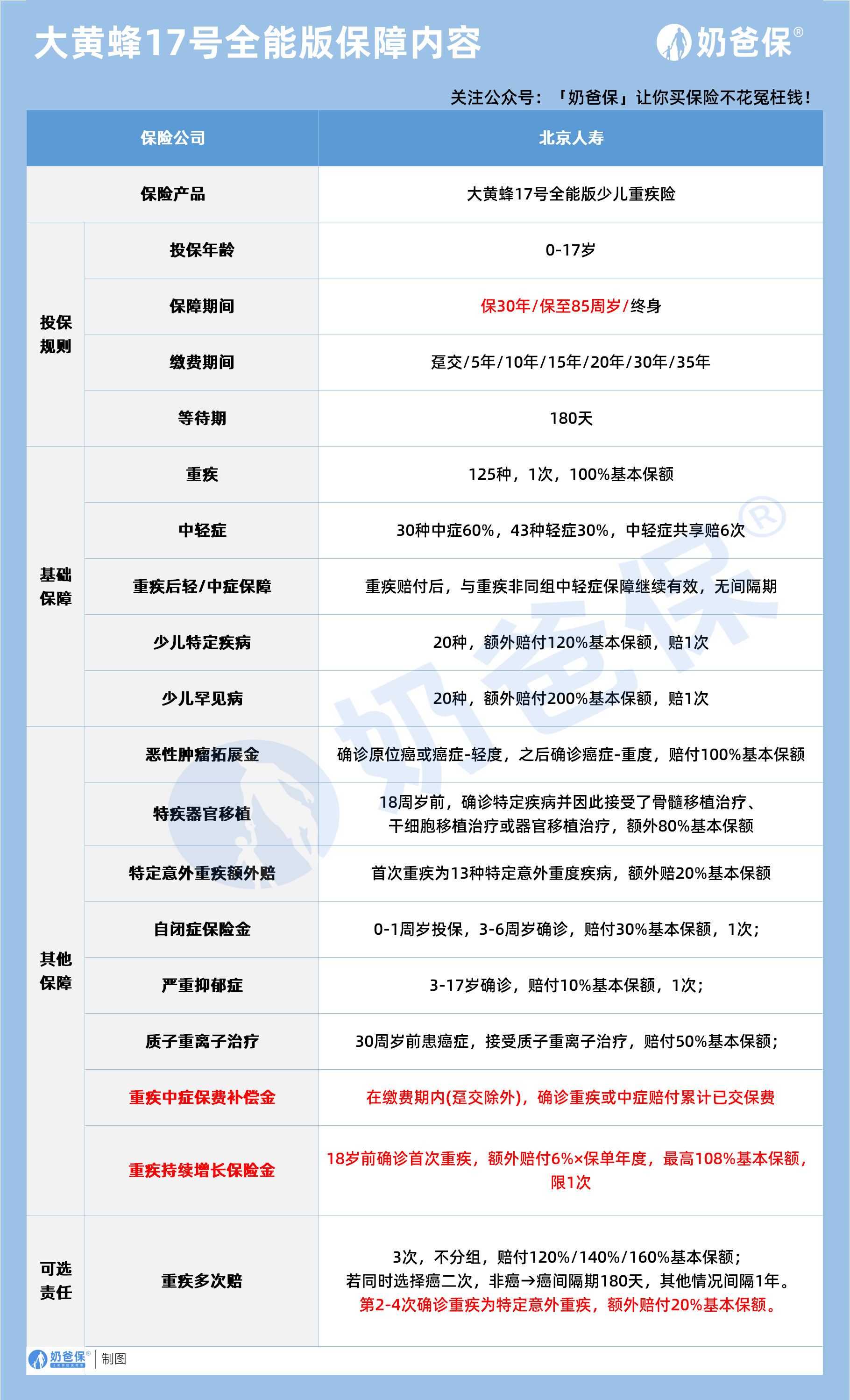 大黄蜂17号全能版的核心优势是少儿阶段的保障力度拉满,