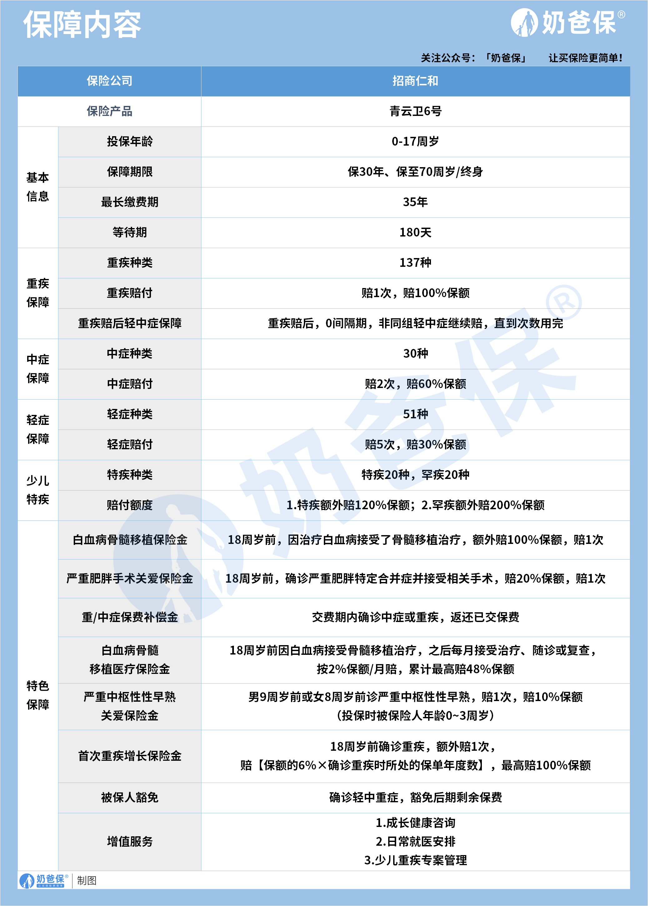 还覆盖了多种少儿特定疾病的额外保障,自带被保人豁免,