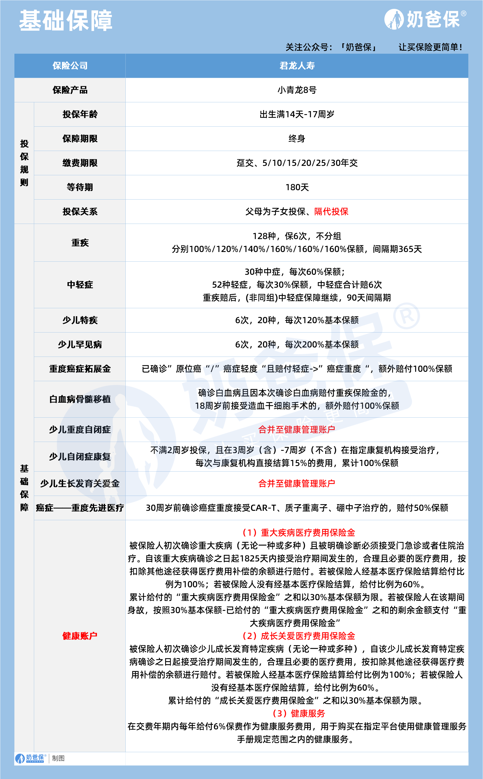 它的保障没有明显短板,少儿阶段的额外赔付到位,