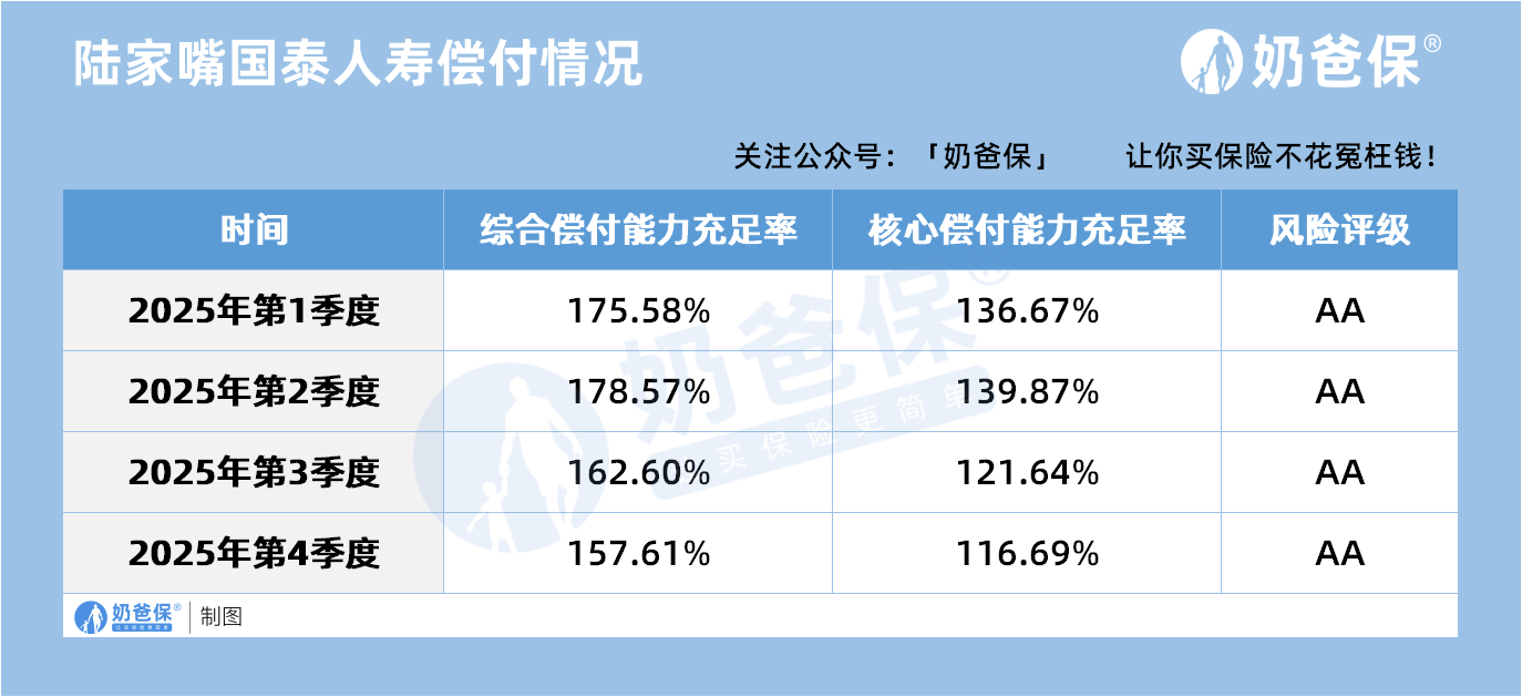 从公司层面来看,陆家嘴国泰的偿付能力和风险评级都符合监管要求,