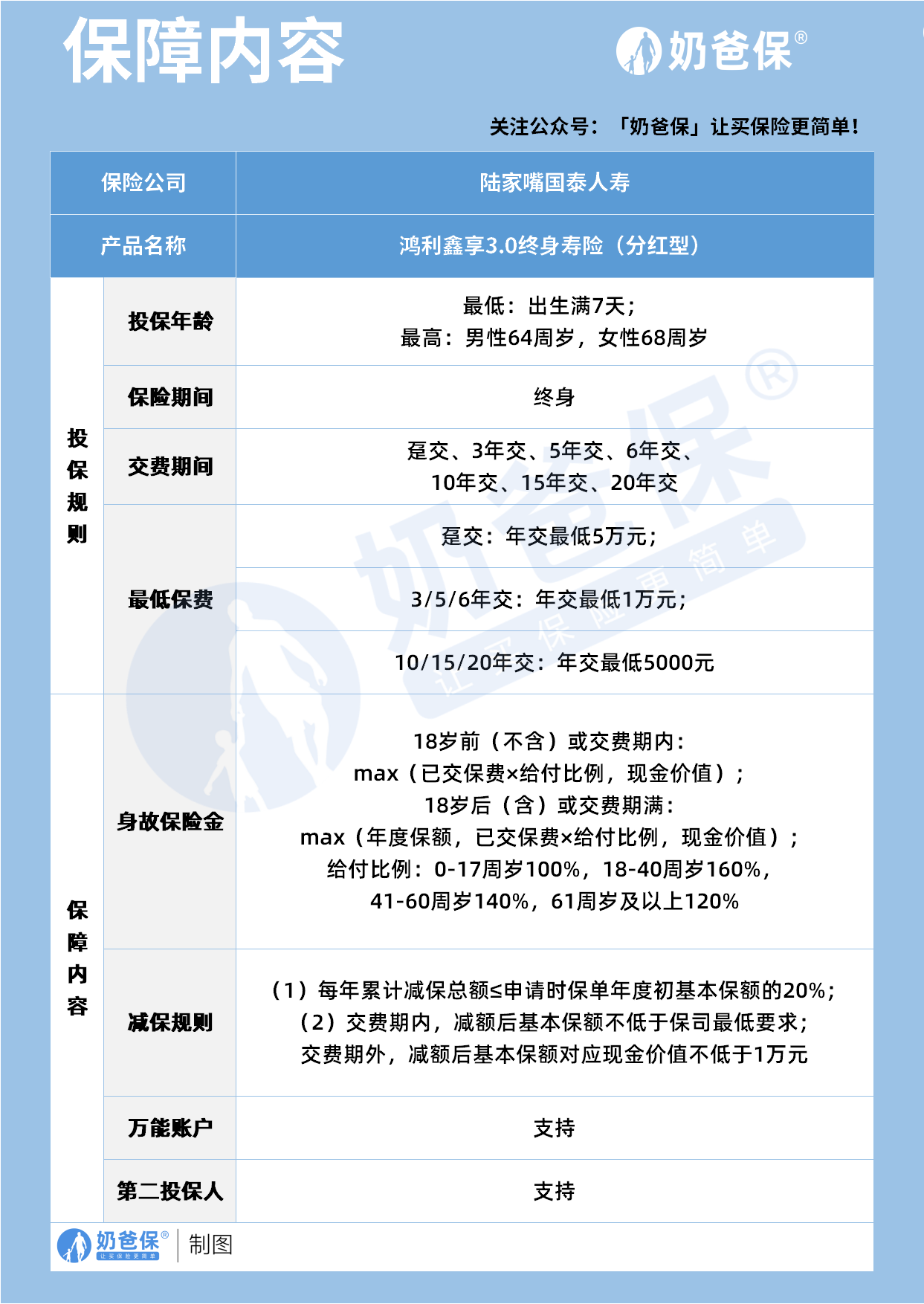 再来说说鸿利鑫享3.0终身寿险(分红型),