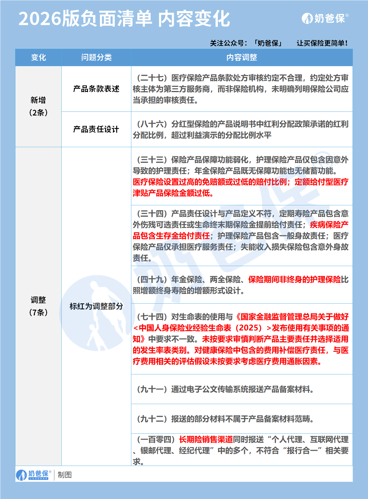 这份清单相当于保险产品的红线手册,只要产品触碰清单里的违规条款,就必须立刻下架整改或进行优化。