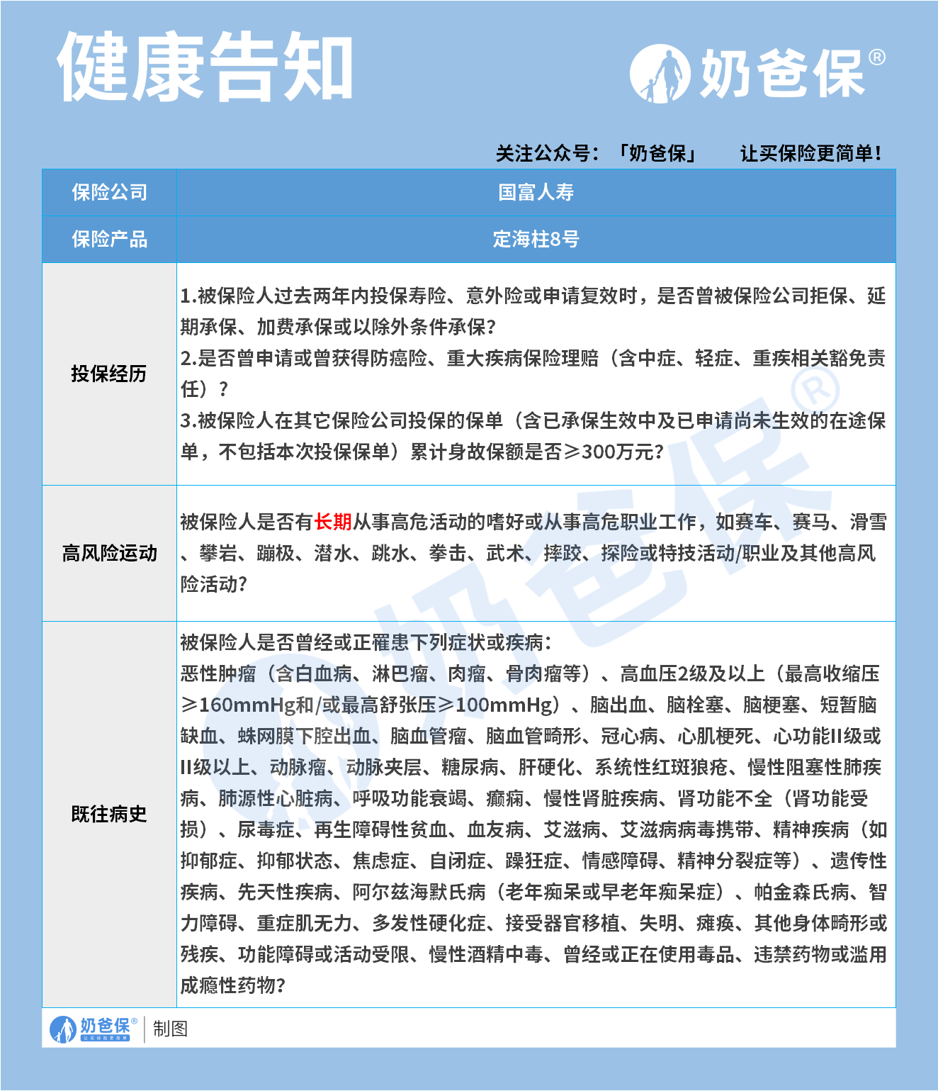 投保经历、高风险运动和既往病史。
