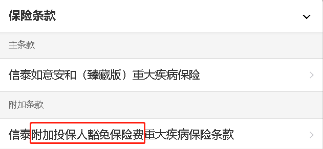 例如,达尔文三号(含身故):主险叫“信泰如意安和(臻藏版)重大疾病保险”;附加险叫“信泰附加投保人豁免保险费重大疾病保险条款”。