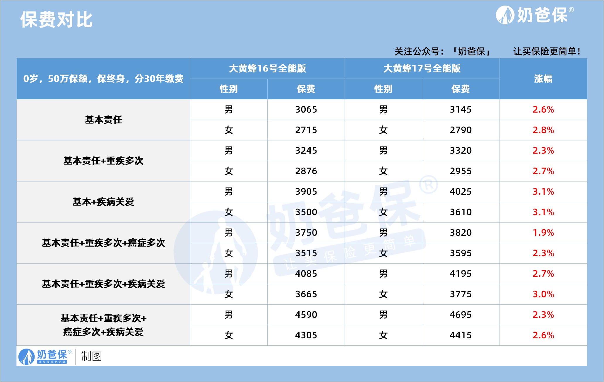 对比上一代大黄蜂 16 号,17 号保费涨幅在 2%-3% 左右,整体涨幅不大,价格仍有竞争力。