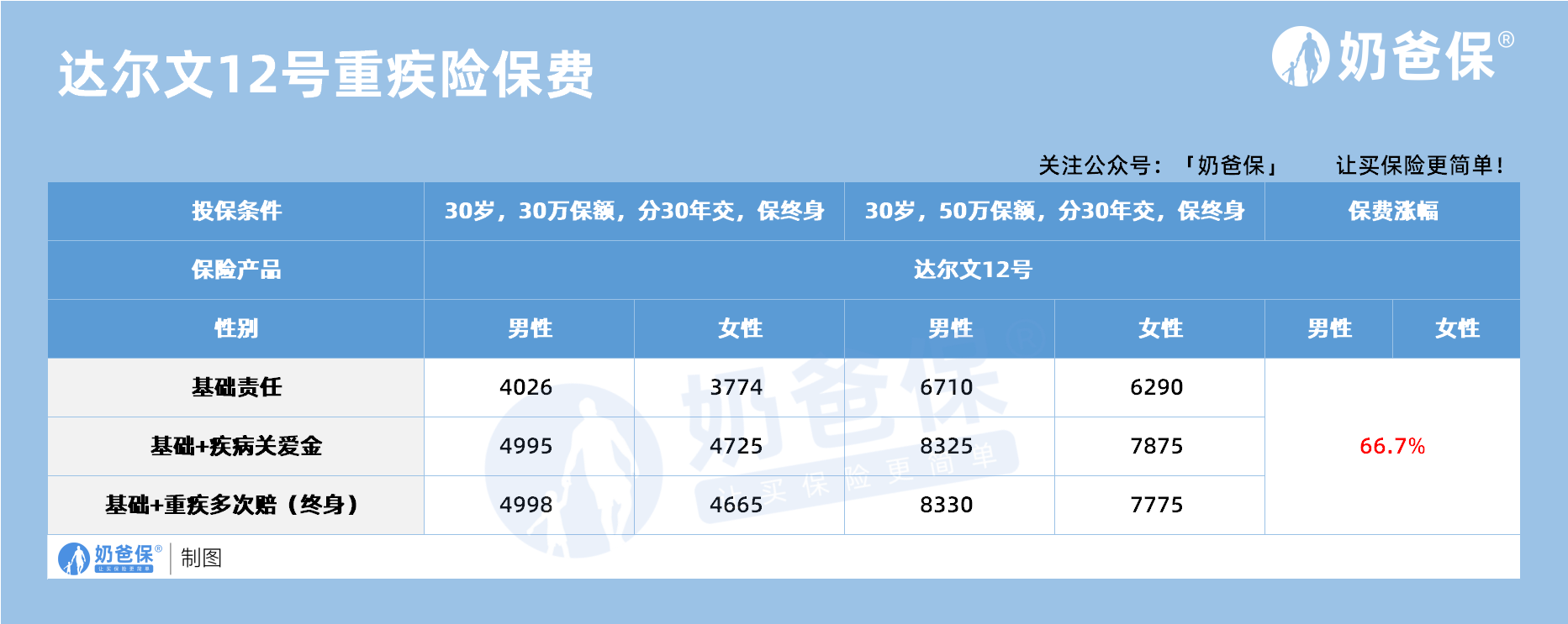 达尔文 12 号重疾险的保费,和保障责任、保额、性别都有直接关联。